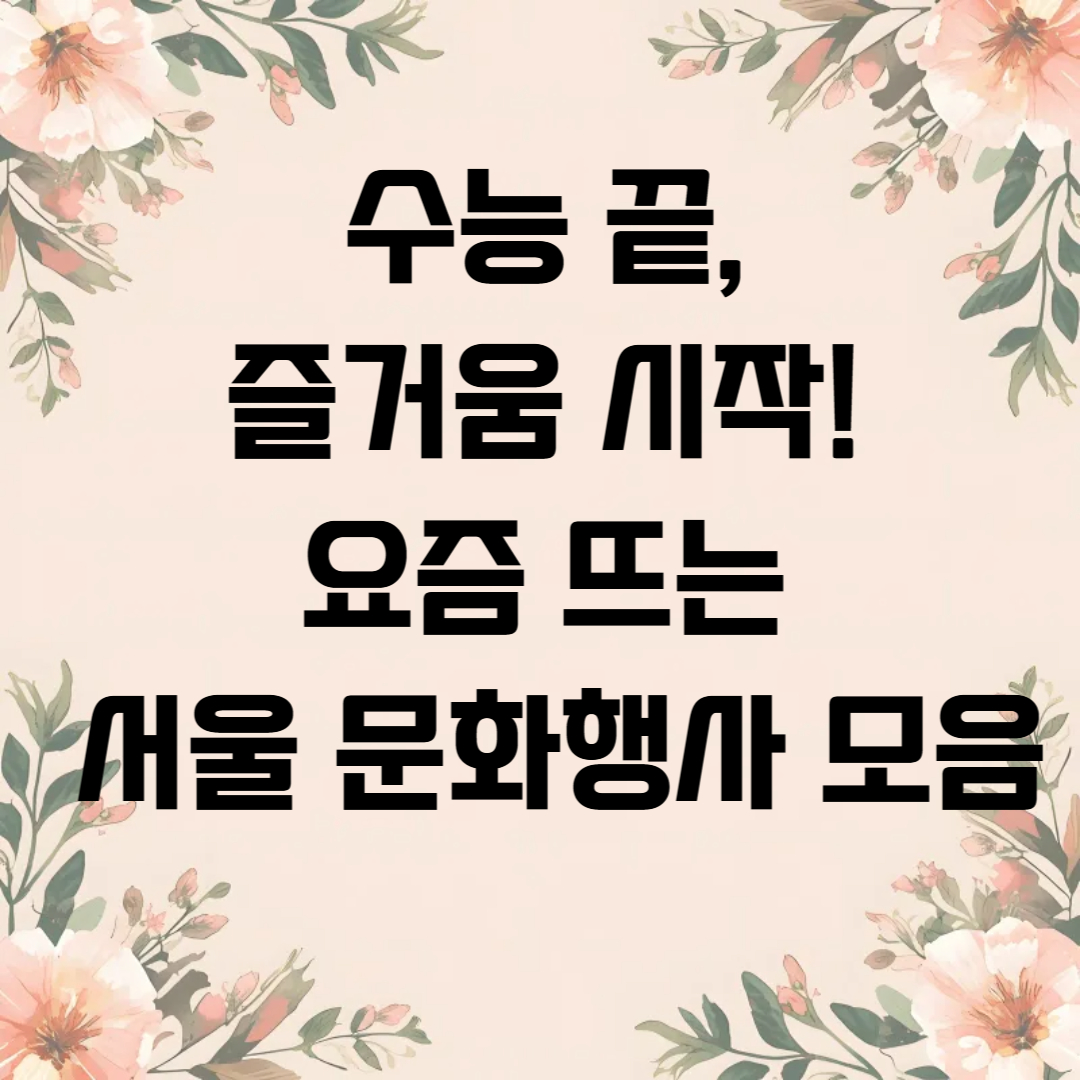 수험생 여러분, 2026학년도 수능 레이스를 완주한 것을 진심으로 축하드립니다. 이제 여러분에게는 인생에서 가장 값진 '자유 시간', 즉 미니 갭이어(Mini Gap Year)가 주어졌습니다. 이 시간을 단순히 소비하지 마세요. 서울의 다채로운 문화 행사를 **'영감의 도구'**로 활용하여, 지친 몸에 활력을 불어넣고 앞으로의 10년을 위한 구체적인 아이디어를 얻어봅시다. 지금부터 소개할 4가지 **구체적인 미션**을 통해 여러분의 쉼표를 '성장의 발판'으로 만들어보세요.